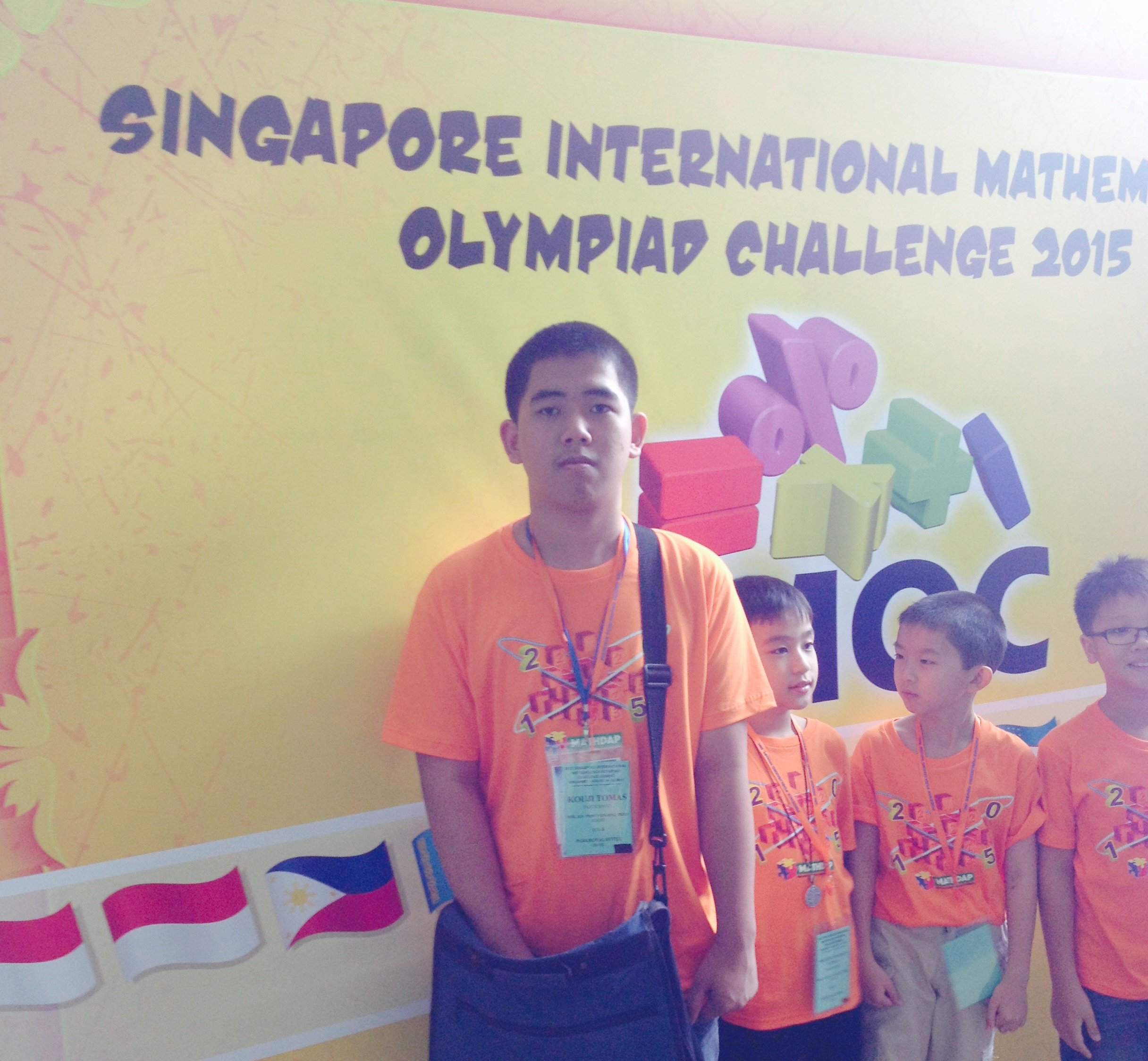 Kouji Tomas also won an Honorable Mention Award in the inaugural Singapore International Mathematics Olympiad Challenge (SIMOC) 2015 held in Singapore on August 14-17, 2015. SIMOC drew 400 participants from 13 countries which include Bulgaria, Cambodia, China, Hong Kong, Indonesia, Malaysia, Mongolia, Myanmar, Philippines, Singapore, Uzbekistan and Vietnam.