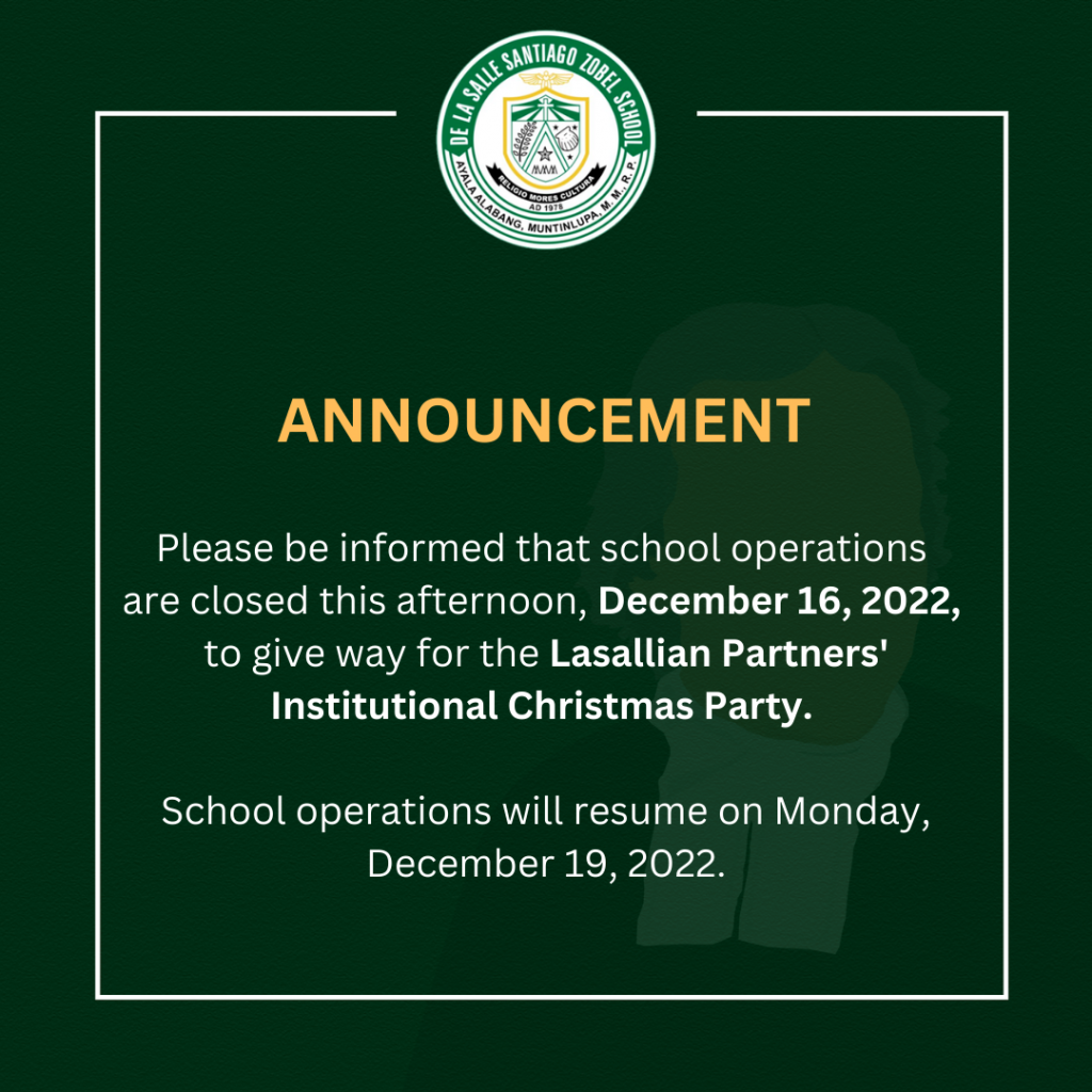 DLSZ Offices closed this afternoon, Dec 16