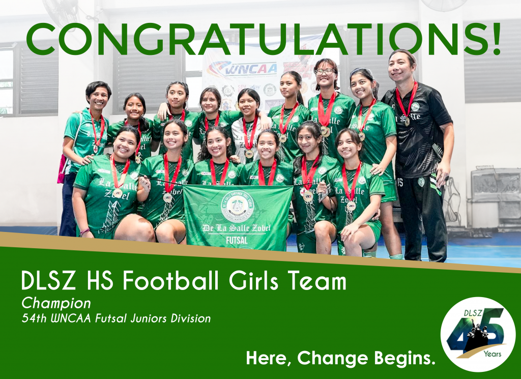 DLSZ High School Football Girls Team defended their championship title against their rival school Miriam College during the 54th WNCAA Futsal Juniors Division last December 10, 2023, at Assumption College, Makati City.