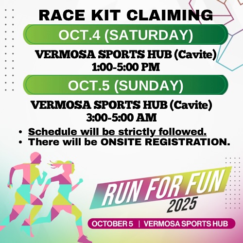 On race day, finishers will also receive their medal and loot bag! Let’s get ready to run together this October 5 at Vermosa Sports Hub!