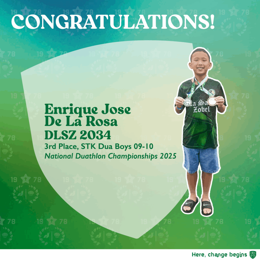 Congratulations to our DLSZ Triathlon Team for achieving three (3) podium finishes at the National Duathlon Championships 2025 held on October 19, 2025, in Villar City, Bacoor, Cavite, under the guidance of Head Coach Noel Salvador