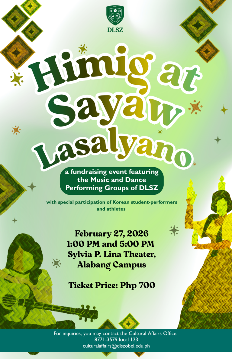 Witness powerful performances from the DLSZ Rondalla, DLSZ Symphonic Band, DLSZ Chorale, DLSZ Strings, DLSZ RAK, Musikawayan, DLSZ Ballet, Zobel Dance Crew, and Luntiang Dagitab Dance Troupe—all on one stage.